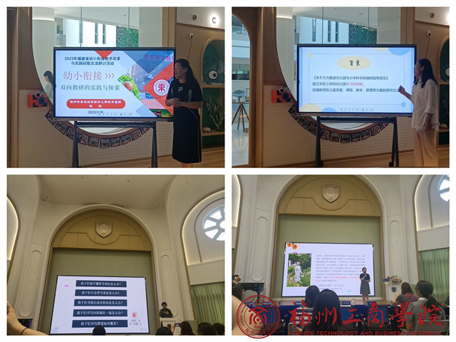 其次,下午参加“幼小衔接联合教研(专题讲座)”,先后听取四场讲座:温州市学前教育指导中心陈 苗老师主讲《基于儿童立场的幼小衔接行动》;福州市晋安区实验幼儿园连 胜老师主讲《幼小衔接双向教研的实践与探索》;晋江市安海实验幼儿园颜秀贵老师主讲《夯实幼小联研 助推顺利衔接》;厦门市湖里实验幼儿园覃文文老师主讲《幼小衔接背景下“1+2”沉浸式联合教研机制的实践与探索》等讲座,受益匪浅。