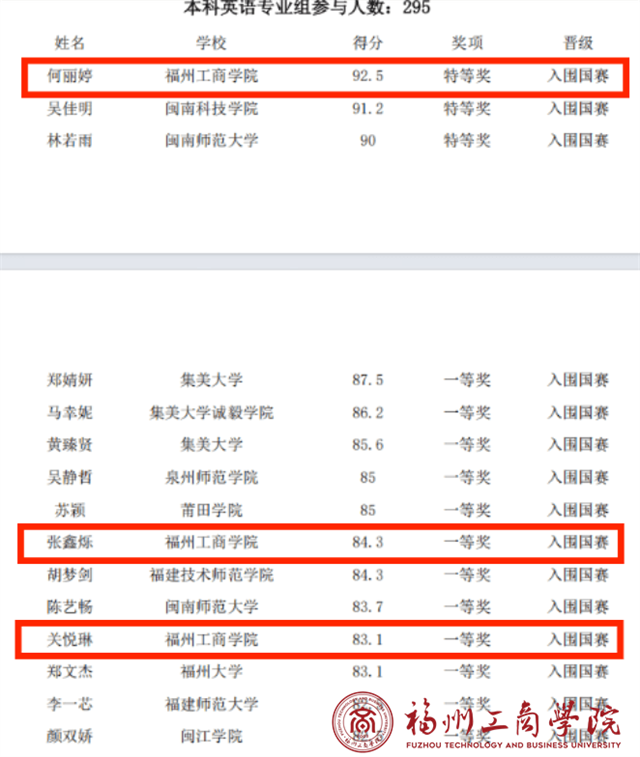 值得一提的是,本次全省英语组决赛共有15位同学晋级全国赛,我校另有2022级英语2班张鑫烁(排名第9-指导老师蒋维金)和2022级英语2班关悦琳(排名第12-指导老师赵林静)也成功晋级。这份成绩离不开英语教学团队的悉心指导,老师们结合赛事特点,开展针对性辅导,通过词汇精讲、答题技巧培训等课程,为学生搭建起高效备赛平台。