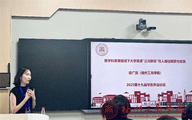 经论坛学术委员会评审,徐广贤老师的论文从180余篇投稿中脱颖而出,入选112篇评审论文,并最终荣获“优秀论文奖”(华东六省一市共36篇论文获奖),获选论文拟发表于《华东外语论坛》第十七辑。该成果体现了福州工商学院在外语教学改革与跨学科融合方面的积极探索与实践成效,也为新时代高校外语教育的价值重构与路径创新提供了有益参考。