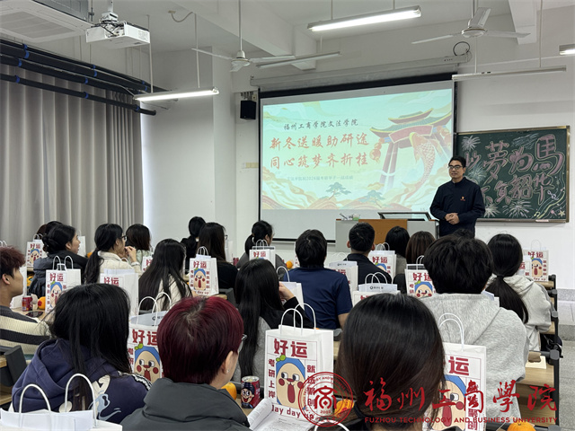 为鼓舞考研学子斗志,坚定备考信心,传递学院温暖关怀,12月8日,福州工商学院文法学院暖心举行了“新冬送暖助研途,同心筑梦齐折桂”慰问活动。学院党委书记何祥檩主持大会,全体毕业班辅导员共同参与,为即将奔赴考场的学子们送上深切慰问与真挚祝福。