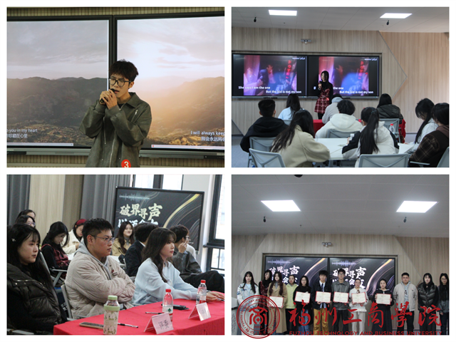 12月15日下午,崇德楼402活动现场氛围热烈,英文歌曲大比拼有序开展。参赛选手依次登台,以饱满的精神面貌演绎精心遴选的积极向上曲目,选手搭配风格明快的MV配乐,凭借流畅动听的唱腔、真挚饱满的情感,展现英文歌曲的韵律之美与青春风采。活动邀请专业评委现场打分点评,每五位选手演唱完毕即时公布得分,既保证了赛事的公平公正,也为选手提供了即时性的专业指导。整场活动不仅为同学们提供了展示音乐才艺与语言功底的舞台,更有效激发了学子对英文学习的热情,推动大家在旋律与歌声中加深对语言的感知。