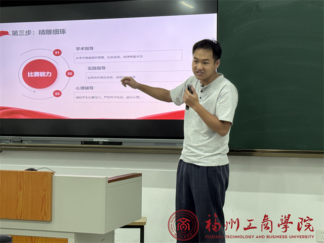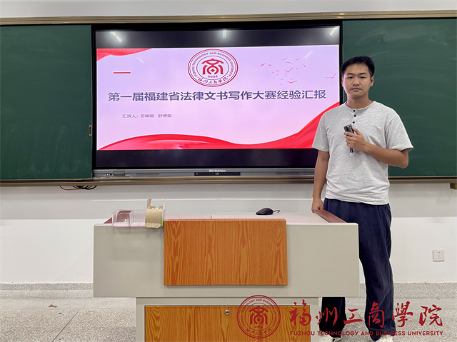 近日,福州工商学院文法学院成功举办第一届福建省法律文书写作大赛指导学生获奖经验分享大会。苏刚毅老师作为获奖指导教师代表,系统分享了与福建鼎迈律师事务所副主任肖九锥共同指导学生获得省级二等奖、省级三等奖的产学研融合培养经验。本次分享会从“校企协同、产教融合” 的独特视角,全面阐述了法学教育与法律实务相结合的创新路径,为法学实践教学提供了可复制推广的新范式。